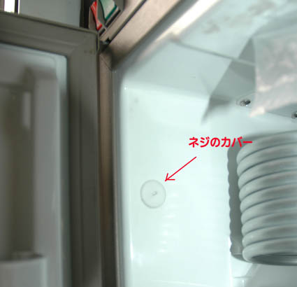 2)冷蔵庫の内側両側についている固定ビスをはずす。
